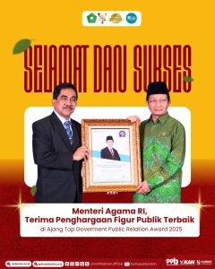 HumasUIN – Menteri Agama Nasaruddin Umar, menerima penghargaan Top GPR Figure Award 2025 dalam ajang 5th Top Government Public Relation Award 2025