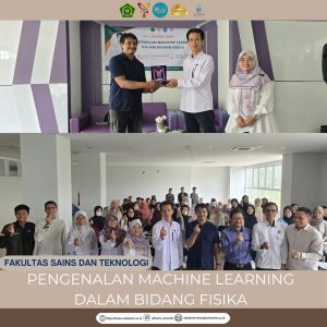 Dihadiri oleh Wakil Dekan II Fakultas Sains, Dr. Aan Ansori, S.Kom., M.M., Ketua Program Studi Fisika, Elsa Ariani, M.Si., para dosen, serta mahasiswa dari seluruh angkatan, acara ini menghadirkan narasumber utama Zulkaida Akbar, Ph.D., peneliti Pusat Riset Fisika Kuantum BRIN. Ia memaparkan integrasi teknologi kecerdasan buatan dalam riset fisika modern, termasuk studi kasus penerapan ML dalam simulasi kuantum, analisis data eksperimen, dan pemodelan fenomena fisika kompleks.