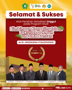 HumasUIN – Program Studi Bimbingan Konseling Islam (BKI) Program Sarjana, Fakultas Dakwah, UIN Sultan Maulana Hasanuddin Banten, resmi meraih akreditasi Unggul. Pencapaian ini merupakan pengakuan tertinggi dari Badan Akreditasi Nasional Perguruan Tinggi (BAN-PT) atas mutu akademik, tata kelola, serta kontribusi keilmuan prodi di tingkat nasional.