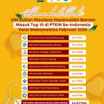 HumasUIN – UIN Sultan Maulana Hasanuddin (SMH) Banten sukses mencatatkan prestasi gemilang dengan masuk ke dalam jajaran 10 besar Perguruan Tinggi Keagamaan Islam Negeri (PTKIN) terbaik di Indonesia berdasarkan pemeringkatan Webometrics edisi Februari 2026. Capaian ini menunjukkan posisi UIN SMH Banten yang semakin kompetitif di tingkat nasional, bersanding dengan kampus-kampus besar seperti UIN Sunan Gunung Djati Bandung dan UIN Syarif Hidayatullah Jakarta.