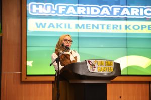 Wakil Menteri Koperasi RI, Hj. Farida Frichah, M.Si., menutup rangkaian sambutan dengan menekankan bahwa koperasi adalah amanat konstitusi yang harus dikelola secara profesional oleh kaum intelektual.