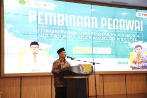 HumasUIN – Mengawali masa kerja pasca libur Idulfitri 1447 Hijriah, UIN Sultan Maulana Hasanuddin Banten menggelar kegiatan Pembinaan Pegawai sekaligus Halalbihalal di Auditorium universitas pada Rabu (01/04/2026). Kegiatan ini bertujuan untuk mempererat tali silaturahmi serta meningkatkan kualitas pelayanan kepegawaian di lingkungan kampus.