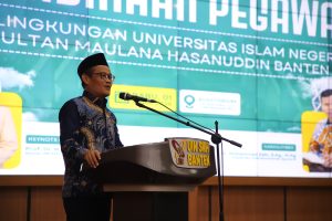 Kepala Biro SDM Kementerian Agama RI Dr. Muhammad Zain, S.Ag., M.Ag yang hadir sebagai narasumber utama memberikan apresiasi atas dedikasi pegawai UIN SMH Banten. Selain menyampaikan materi pembinaan, beliau juga menyampaikan permohonan maaf lahir dan batin kepada seluruh keluarga besar universitas.